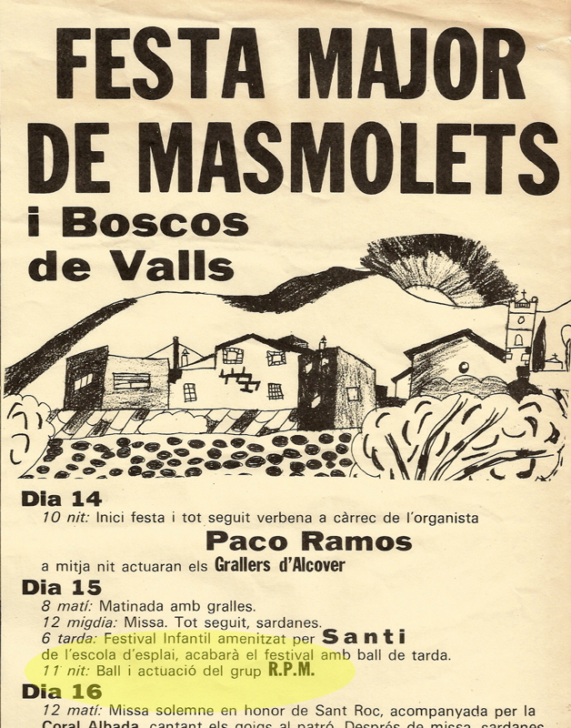 David Valera: Ramon, vet aqui la meva pregunta, proposada a la vegada per l'Anna, la meva parella: ¿recordes haver tocat fa uns anyets a Masmolets amb RPM?